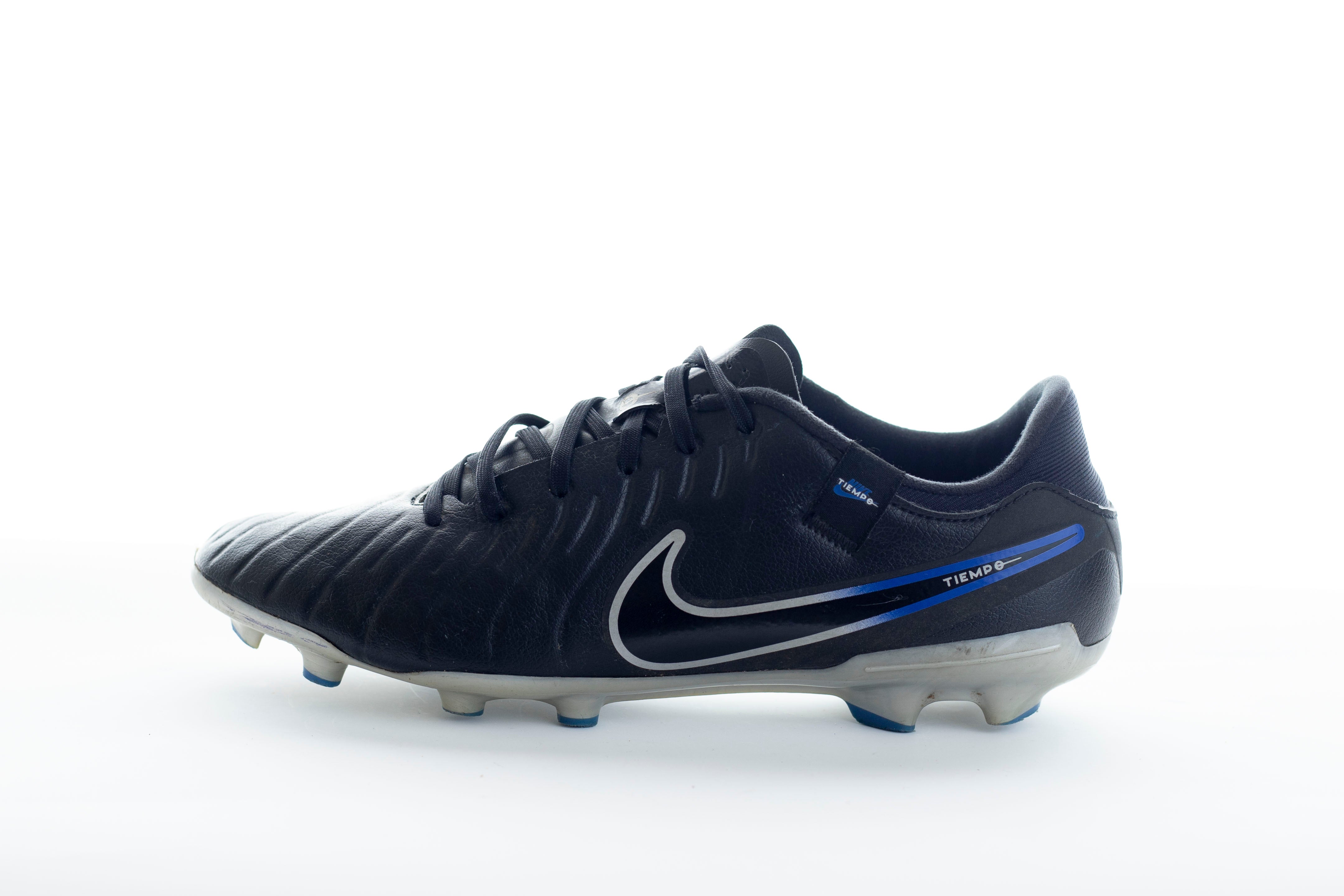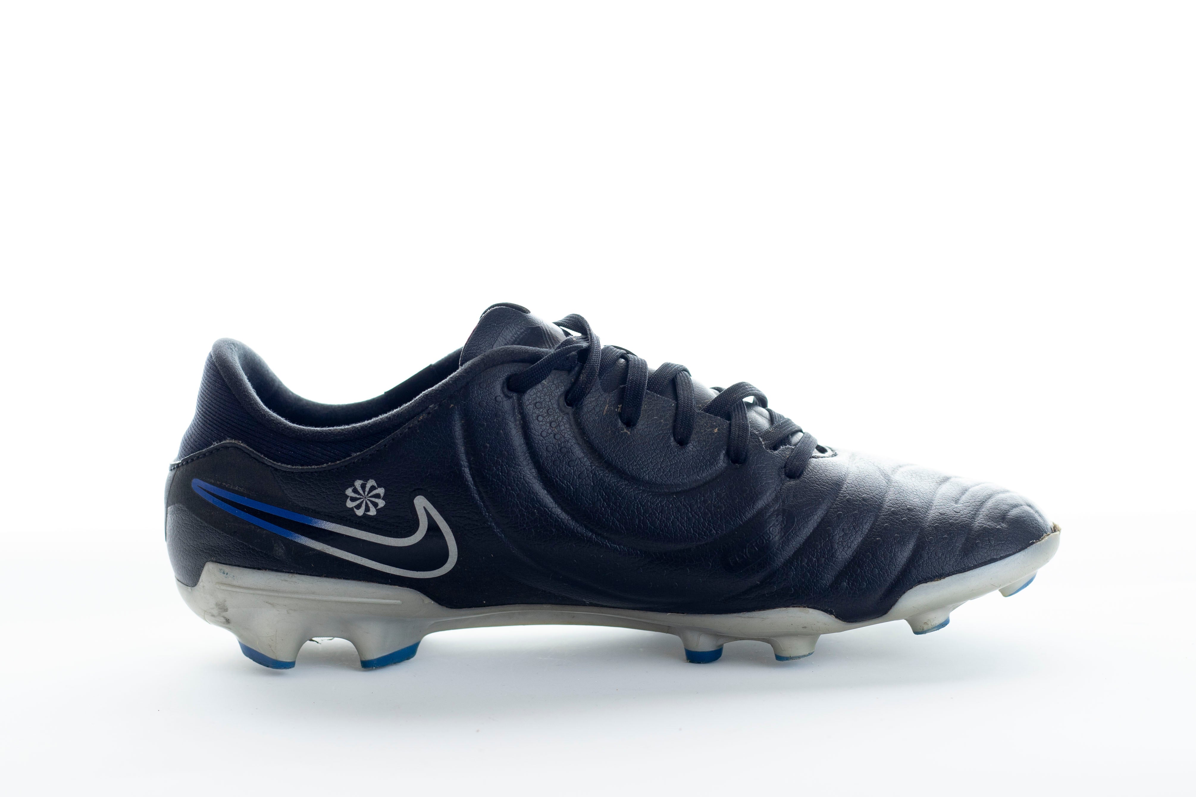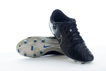 Make the game look easy wearing Nike Tiempo Legend X Academy MG football boots in Black/Chrome/Hyper Royal, featuring a moulded, engineered upper for effortless touch.